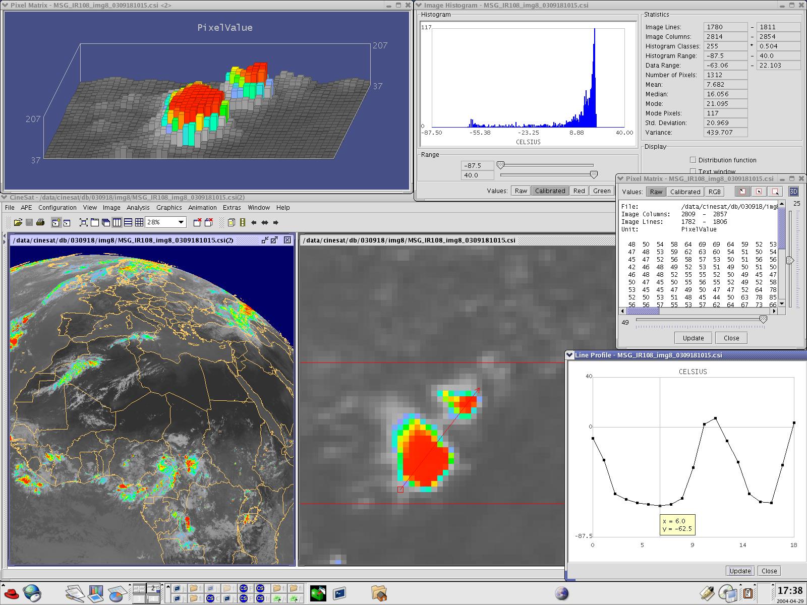 With start of Meteosat 2nd Generation in 2003, CineSat became a well appreciated standard software solution for real-time processing of and product generation from meteorological data distributed via EUMETCast.