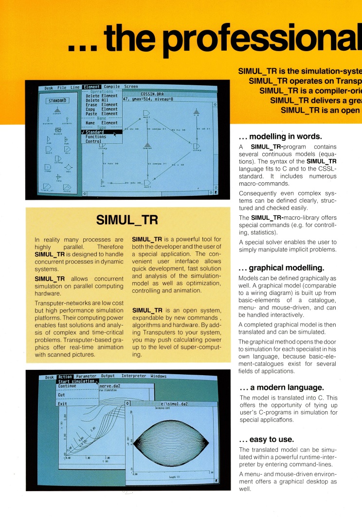 Its application ranges from complex factory process simulations, high-performance animation display with 25 images per second, to high-speed test beds (hardware-in-the-loop simulations) for devices.