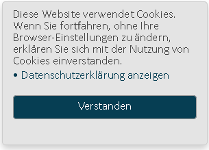 Rechts unten erscheint der verpflichtende Cookie Hinweis: